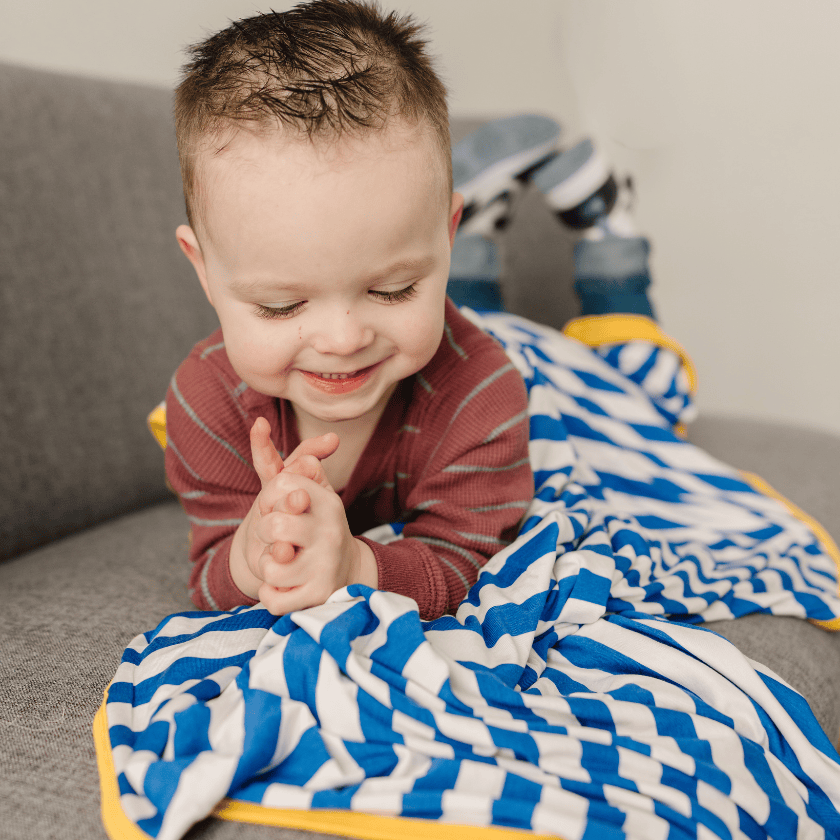 Bright, fresh, and full of coastal charm, Pipermoon's Sorrento Lemon Adult Swaddle Blanket will transport you to sun-soaked days by the sea. With classic blue and white stripes on one side and a cheerful lemon yellow backing, this blanket brings a burst of Mediterranean-inspired joy to your space. Crafted from the softest, high-quality materials, it offers an inviting embrace that feels like a warm, sunny hug. Whether you're looking to brighten up your home or searching for the perfect gift, the Sorrento Lemon Blanket adds a touch of zest and comfort to any moment.